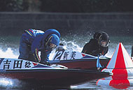 Stringent rules are also applied to speedboat racing -- once again, a betting sport peculiar to Japan. Six competitors in tiny speedboats zip three times around a course marked by two buoys anchored 300 meters apart. The main action occurs at the buoys, where racers try to cut each other off to grab the lead.