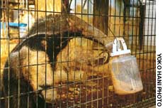 Given the long list of endangered species worldwide that urgently need help, why do so many zoos show the same familiar African species: elephant, giraffe, lion? None of these species needs to be confined in captivity to protect them. Indeed large mammals in zoos are frequently condemned to lives of deprivation and suffering -- witness the demeaning sight of the giant anteater above -- with clear symptoms of boredom and stress quite commonly apparent.