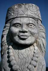 Trade between the Ainu and the "Wajin," as the Ezo Japanese called themselves (the Ainu called them "Shamo," a corruption of the Ainu word shisamu, meaning "good neighbor"), developed early and was for the most part brisk and friendly. Matsumae merchants made the rounds of the kotan, exchanging knives, rice, sake and cloth for Ainu salmon and animal skins. The merchants, intent on procuring more for less, at first found the Ainu easy marks for their wiles. To the Ainu, with no culture of acquisitiveness, the greed of the newcomers must have seemed monstrous. Gold was another issue. Not that the Ainu wanted it -- it was valueless to them -- but the Shamo gold-panners polluted the rivers badly enough to endanger the salmon.