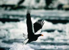 Hokkaido is, in fact, at a natural crossroad. Its population of brown bear crossed via Sakhalin to the northwest. Each winter, too, thousands of sea eagles fly south from Russia -- the most magnificent among them being the enormous Steller's sea eagle, which I have witnessed ripping nonchalantly through the hide of a deer with their monstrous beaks.