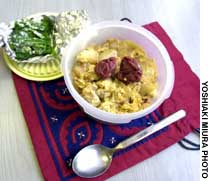 The child's bento is a creative outlet, where cooks are free to imprint their individuality. Parents can form an important bond with their children by engaging through food. "I help Mom draw a ketchup face on my omelet and eat anything she makes," chirps 7-year-old Risa Matsui. American mother Kim Sano uses the bento box to introduce American cuisine to her daughter's elementary school friends. "I won't wrap the box as is traditional; instead I use interesting picnic ware."
