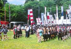 As the gunnery demonstrations are repeated, there's also plenty of time to explore the wooded terrain and take in some of the area's panoramic views. The latter may well include the promontory in the fork of two rivers where the castle stood, which can be viewed to good advantage from the Ushibuchi Bridge on the way to Tobigasu Hill, where a memorial service to the fallen is followed by a smoke signal -- in honor of Torii Suneemon -- to formally open proceedings.