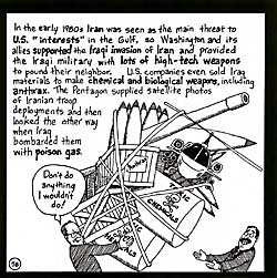 The original idea was to do only 8 to 16 pages, just about the Gulf War. But then as I got into it, I realized that, to really explain what the war was about, I needed to also add some history, because people don't really recognize the U.S. as a militarist power. Here [in the United States] they don't; they don't learn about this history. So it just expanded.