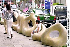 To try and find out, I went along to Roppongi Hills in Tokyo's Minato Ward. This massive redevelopment project, opened with much fanfare in spring, showcases nearly 20 public artworks and items of "street furniture" scattered around its 11.6 hectares. As it is a declared aim of its developer, Mori Building Co., to make Roppongi Hills a major new cultural node in the capital, there seemed no better place to go on the last weekend of the Bon holidays to see how people react to public art.