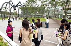 Dismayed, I was plodding off when I was suddenly surrounded by a group of people -- and they were all looking intently at "Maman." It was an art tour of Roppongi Hills, no less. I soon discovered that Mori Building Co. has been operating three tours a day of the complex since it opened, and in July had added this special art tour on Wednesday and Saturday from 11 a.m. at a cost of 1,500 yen a head.