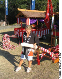 The week before the festival we clean up the island, especially the roads that lead up to Shisha Shrine, the main shrine situated in the foothills of the mountain. These roads are lined with bamboo stalks, between which is hung a rope, upon which is attached red-and-white lanterns, between which are hung white purification papers called "gohei" (appropriately pronounced Go! Hey!). The roads that lead to the shrine are the roads the Shinto gods will pass over, so they are appropriately decorated to impress the gods.