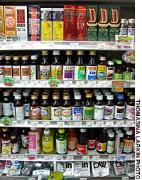 Over a dozen brands produce "functional drinks" containing calcium, iron, amino acids, b-carotene, fiber, hangover cures, or ingredients to help joint flexibility or thin blood.