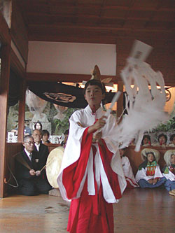 There are four gods in particular that we aim to please. They live in Shisha Shrine in the side of the mountain. On the day of the fall festival, young virgins dance for them inside the shrine and then we take the gods for a spin around the island in mikoshi, portable shrines, so they can get out a bit. Each neighborhood on our island has their own mikoshi and we each take turns taking the gods to visit Ebisu Jinja, a shrine on the beach, and Kompirasan, where the god of the sea lives.