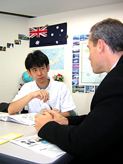 Yasuhiro Nishimi works for a multinational pharmaceutical company in Tokyo and uses English most days at work. In the past he has studied at several schools, and also at his office with teachers dispatched from an agency. Perhaps not surprisingly, having lessons in his office was the most convenient option. However, the quality of the teachers was something of a problem.