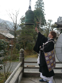 The priest's wife (the temple bomori) wakes their sons, prepares breakfast, packs homework, odds and ends. At 6:25 a.m., they pause to chant at the family altar. Her husband, Junsho, rings the temple bell. It's a typical morning in the life of a not so typical, fully ordained Buddhist priest and British national.
