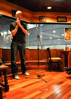 Hoare has found the audiences markedly different at the two venues he has performed at: TCS Cynics at The Hobgoblin in Shibuya, and a beginners' open-mic night at Ben's Cafe in Takadanobaba.