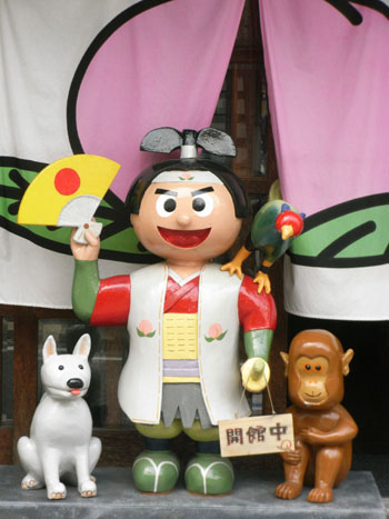 Once upon a time in Okayama, Japan, lived an old man and an old woman who had no children of their own. One day, the old man went into the forest to cut down bamboo while the old woman went to the river to wash clothes. While at the river, she noticed a giant peach bobbing up and down in the water. She took the peach from the river and brought it home to show to her husband. In the evening, when the husband came home, he started to cut open the peach to eat it, but before he could, the peach split open by itself and a baby boy jumped out. They named him Momtaro, the Peach Boy. So far so good, eh?