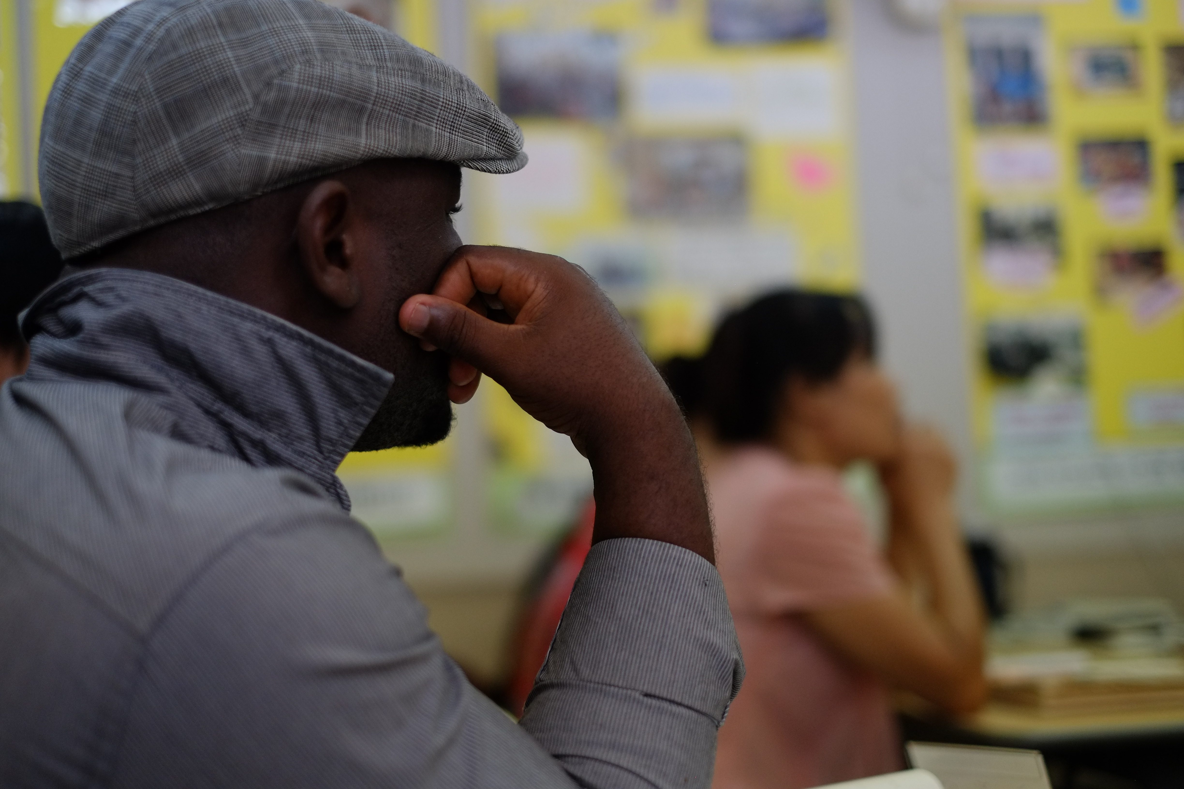 Those who are able to enter the country, however, and claim refugee status before the expiration of their entry permit are eligible for a "designated activities" visa and work permit. Such was the good fortune of Simeon Conteh, 28, a Liberian national who departed Monrovia after Ebola had reached the country, but before it arrived in the capital. When Conteh entered Japan, fellow Africans directed him to nonprofit organizations that assist refugee applicants, which helped him obtain housing and apply for financial support from Refugee Assistance Headquarters. He spends days in the park near his flat in Kashiwa, Chiba Prefecture, where he plays soccer with the local children. He also studies Japanese at a nearby nonprofit that provides low-cost classes.