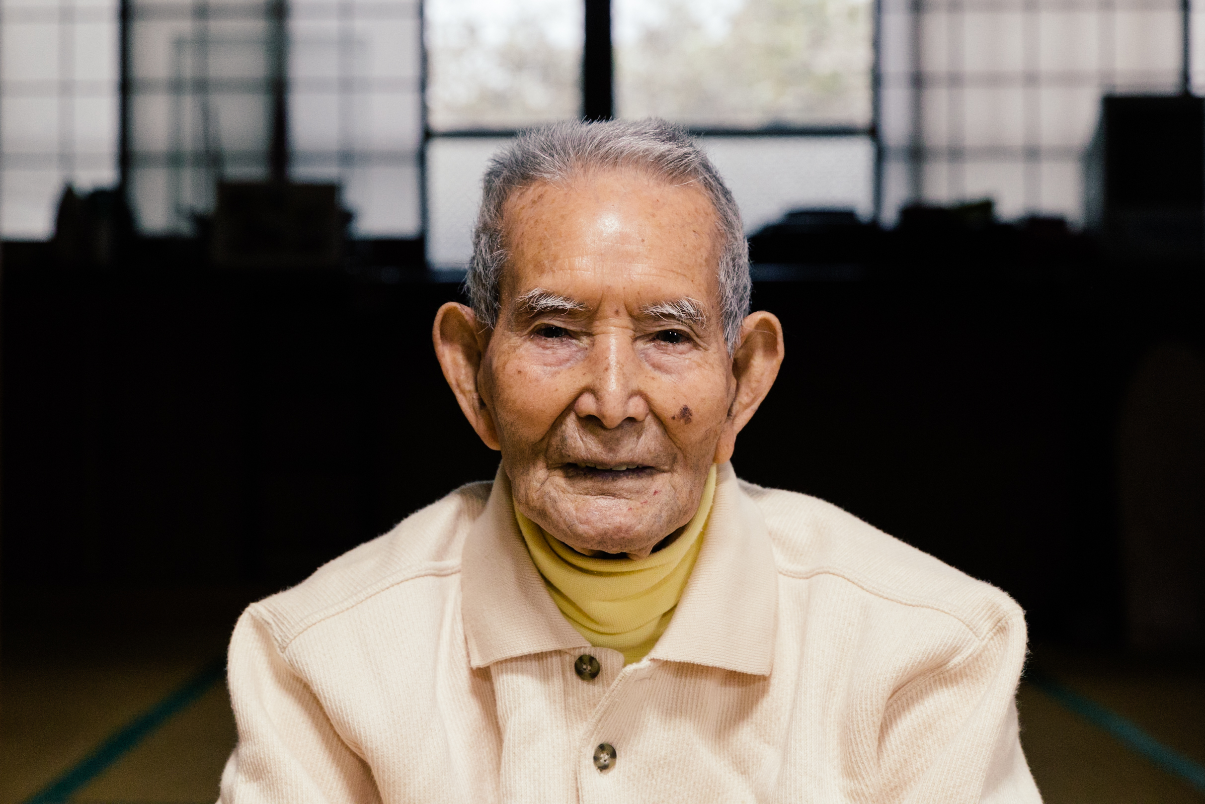 Not only is this Okinawan elder calm and free of any major physical ailments, he is also mentally sharp and has a good memory. An eager talker, the great-great-grandfather readily recalls details about his childhood, wartime and a recent karaoke outing.