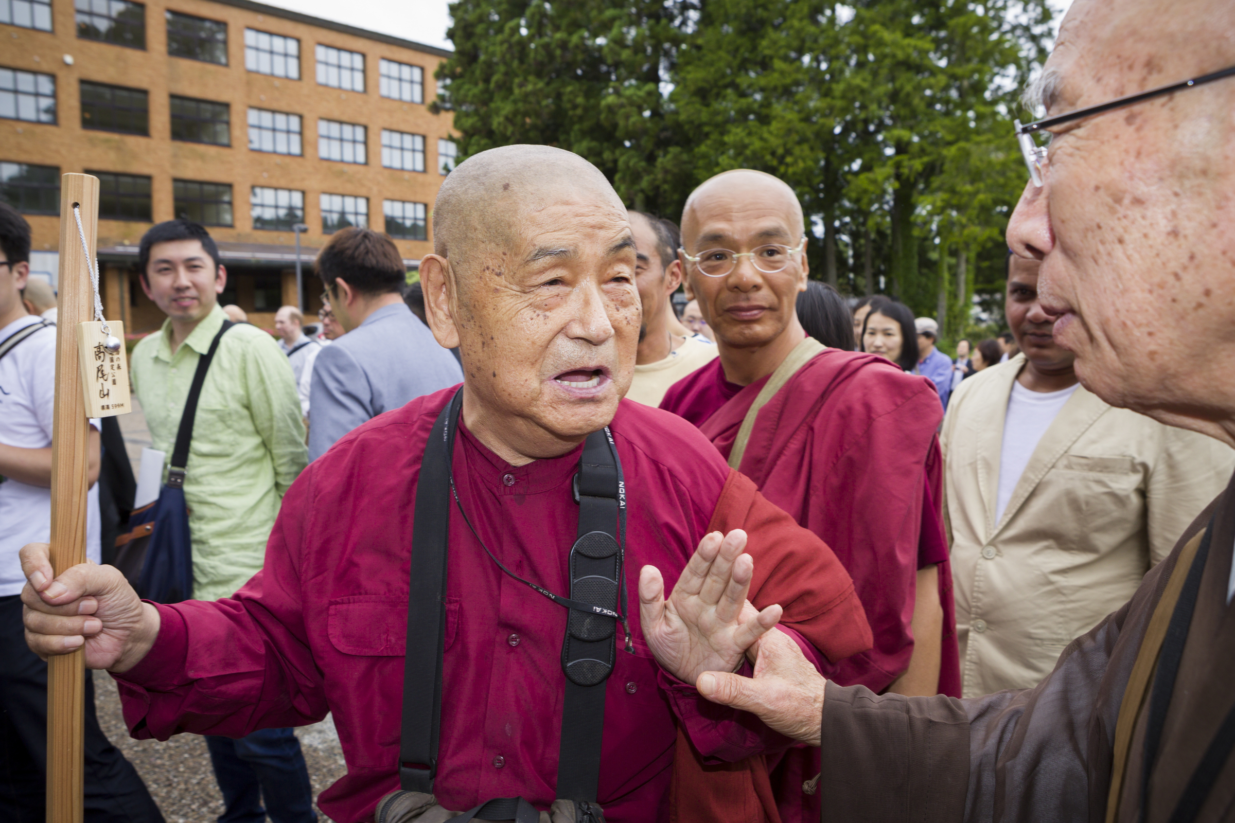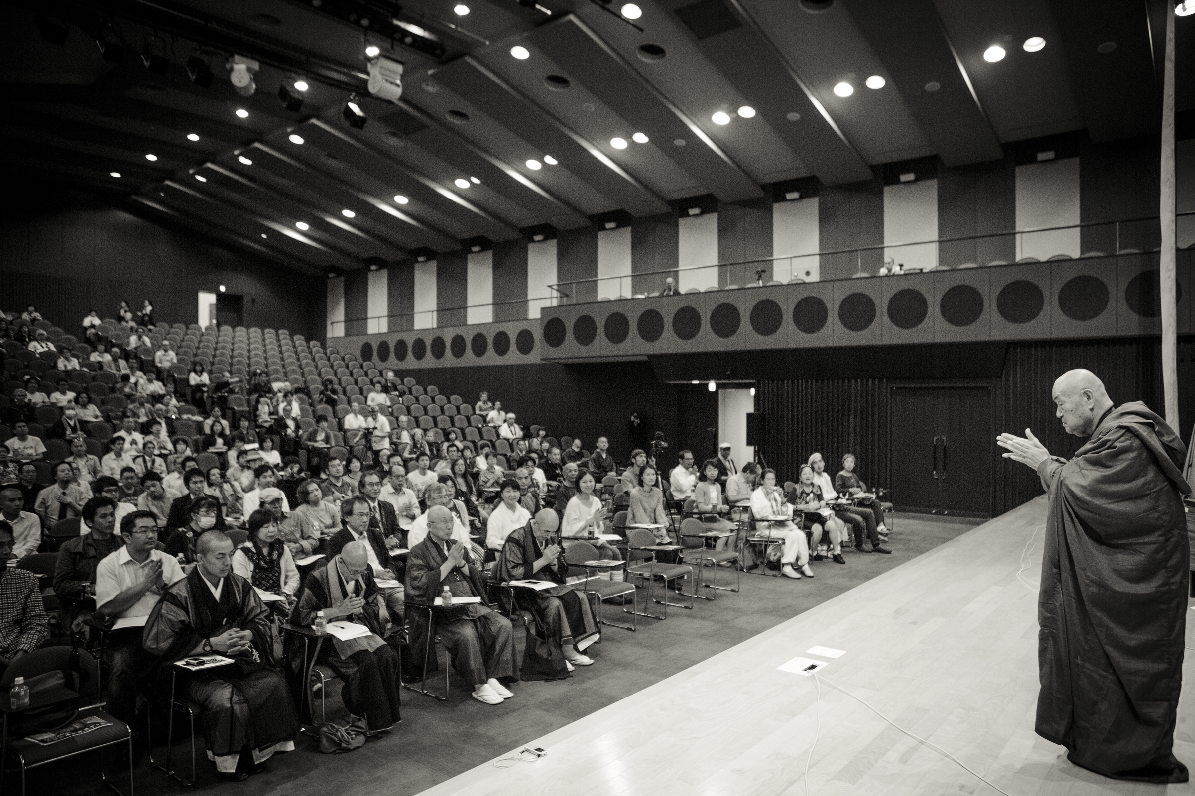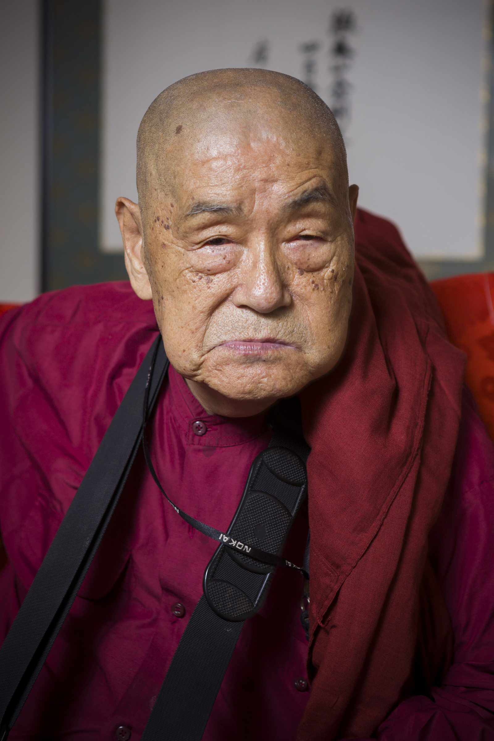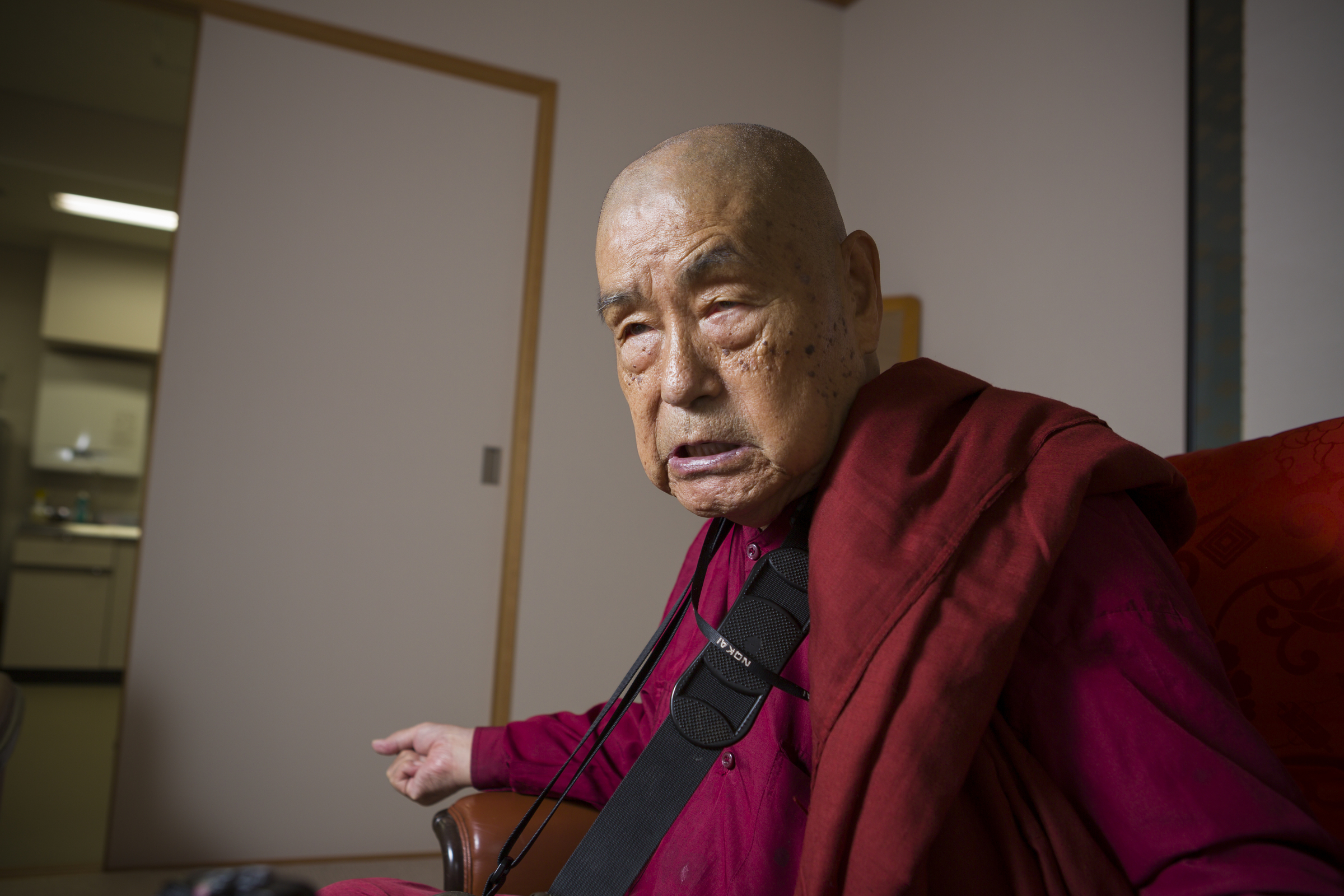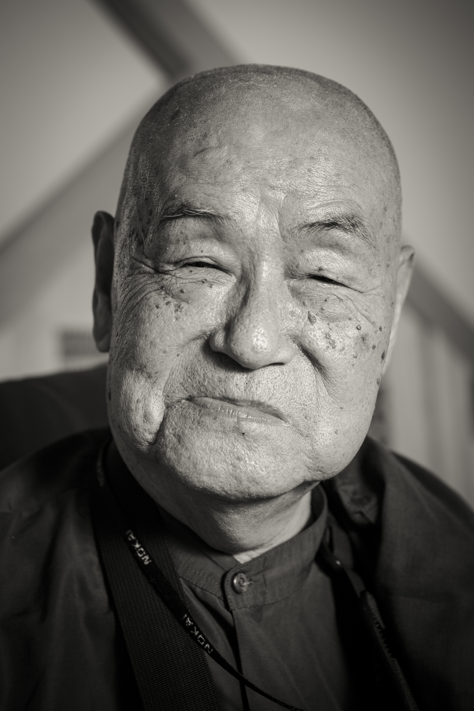 The room goes silent, and when I look up from my recording equipment, an otherworldly figure has entered the room. Its eyes sit deep in their sockets underneath a wrinkled forehead. A strong jaw completes the image of a figure imbued with an iron will. Its clean-shaven head drops in a bow, its thin, stone-like lips open and an old man's coarse voice emerges from somewhere deep inside: "Konnichi wa."