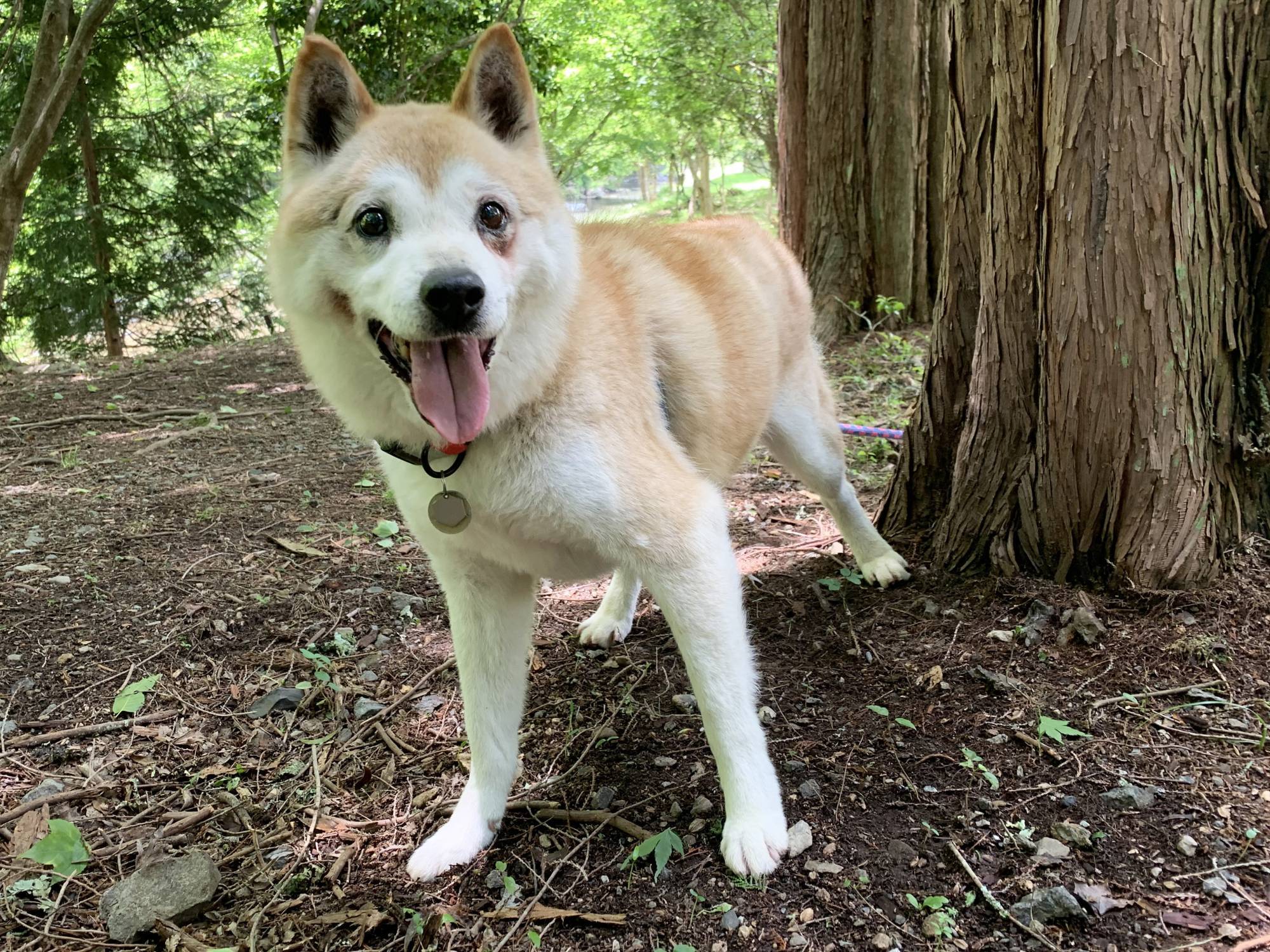 Almond is a gentle dog and though she was initially a bit nervous on walks, she’s much more confident now and well-behaved. The Shimane dogs in general require a bit of patience. On walks, they need to be beside a wall or something solid so they feel protected, or they will panic. Almond tends to freeze. She is improving, however, and time will heal some wounds.