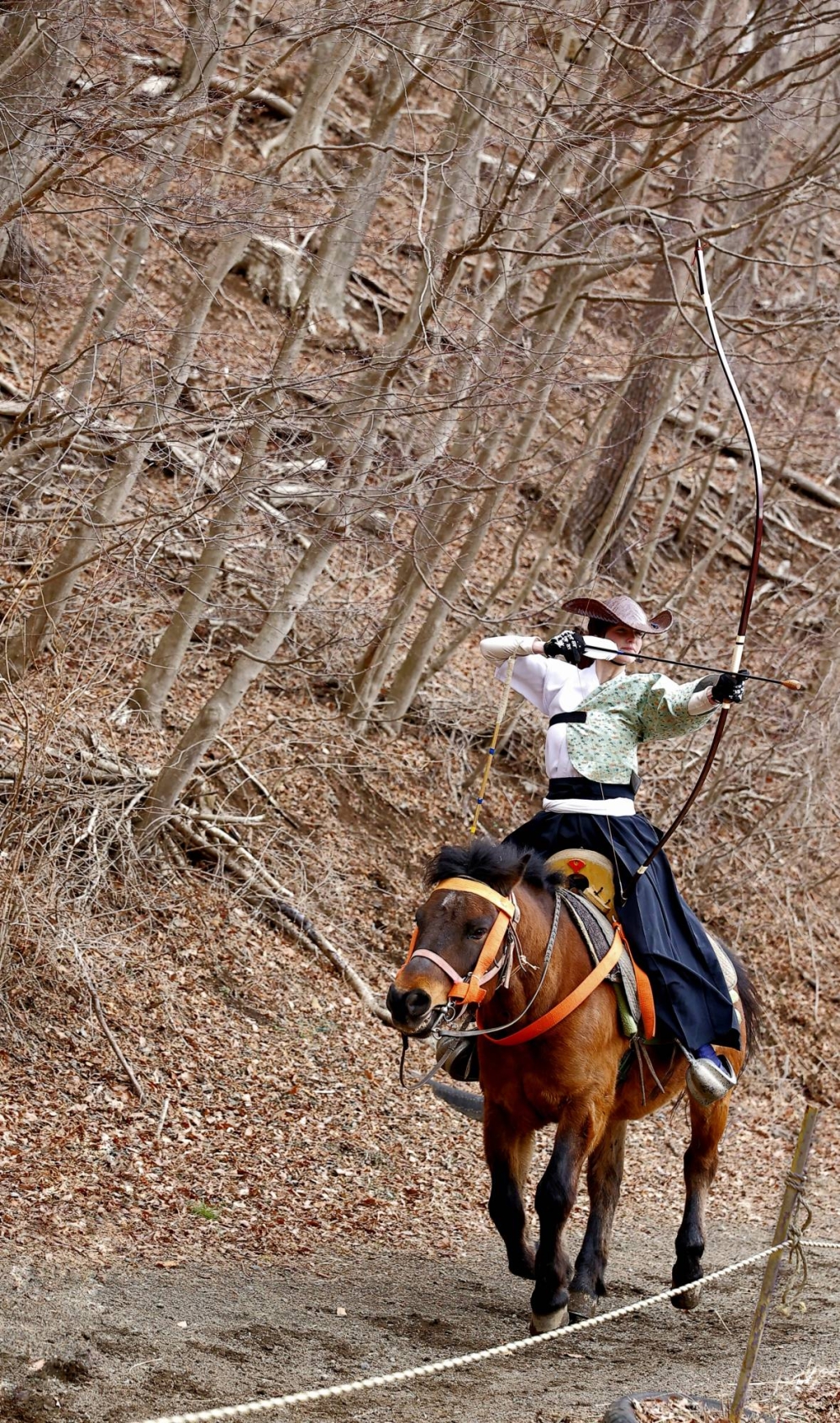 13. Can you ride on horseback and shoot at the same time? That seems tough! It's super fun. There are two types. There's the one performed outside shrines as a Shinto ceremony called yabusame-shinji. It is a very serious practice that takes a long time to become an archer. I do sports yabusame. We use all the same traditional things as yabusame-shinji but it is more welcoming.