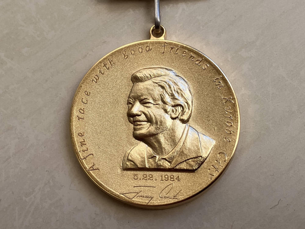 But it was then on to the finish line and the goodie bag: towel, T-shirt, nibbles and a medal. And my goodness, what a medal. Any description will barely do it justice, but I’ll try — a sparkly gold disc with the embossed face of former U.S. President Jimmy Carter. I gathered later that Carter had a link with the city, having paid a visit in 1984 and attended the start of the first marathon there.