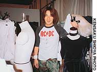 This recycle philosophy is rooted in the designer's own experience of the solitude and comfort-shopping so characteristic of big-city life. "The idea for the recycle project came after I moved from Osaka to Tokyo," the designer explains in TRP #7's fabric-strewn temporary workshop in Yokohama's Queen's Plaza. "I spent five years doing fashion shows with music, acrobats and circus performers -- it was just like entertainment, really. But then I began to wonder what I was doing; I felt lonely. My company was expanding so fast that I had 30 employees but never any time to talk to them meaningfully. I bought anything that caught my interest -- toys, CDs -- but dumped it all quickly . . . One day, I painted everything in my apartment white, toys and everything, there was so much stuff. Then I could relax."
