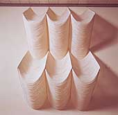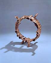 The idea that craft-arts need not be functional is now so well-established that the pendulum has perhaps swung too far, and the focus on exhibition pieces has hastened the separation between art and life. Yet a wonderful suspended fabric-flower (1981) by Toshiko Takagi shows that a great tradition -- here, the outstanding Japanese sense for textiles -- can fruitfully transmute into fresh forms.
