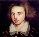 Who: Born 1564, son of a shoemaker and a clergyman's daughter. A scholar at King's School, Canterbury, then at Corpus Christi College, Cambridge. "Tamburlaine" performed late 1580s; "Dr. Faustus" composed ca. 1588-92; "Edward II" entered in Stationer's Register July 6, 1593. Involved in government espionage; also part of an unorthodox philosophy circle around Sir Walter Raleigh. In May 1593, identified by playwright Thomas Kyd, who was tortured fort he information, as the owner of an atheistic treatise found in Kyd's room. Stabbed to death in a Deptford tavern the same month, supposedly in a brawl.
