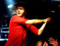 For the next hour, people in the audience were either jumping around crazed or staring at the stage mesmerized, often at the same time and right next to each other. The band was arguably playing songs, but, as a singer, Cedric was not providing the signposts one needs to navigate the sense of a song. He mostly provided drama, aurally with whelps and shrieks and visually by swinging from the lighting fixtures like Tarzan, an image rendered even sillier by his skinny frame and David Soul-like '70s coiffure.