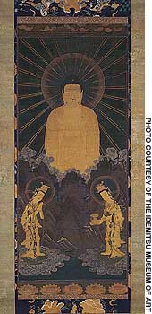 "Such pictures would have been viewed by people on their deathbed," Yatsunami says. "The dying would look up and see Amida waiting, ready to cross over to them, and they would know that paradise was very close."