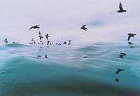 "A Place Where the Sea Is" (1998) a series of photographs by Nobuo Asada, also triggers our memories and takes viewers right back to the primordial setting of the ocean. Asada took his camera into the water, snapping photos of what he saw at different times of day and in varying light conditions. The immediacy of the lens viewpoint -- at water level, parallel to the sea's surface -- seems to plunge the viewer right in, conveying such sensations as the water's coldness and the movement of the waves.