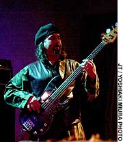 Bill Laswell stands in the lobby outside the Shinjuku Pit Inn, where on April 27 and 28 he played to packed houses with drummer Hideo Yamaki and saxophonist Yasuaki Shimizu. He's just set up his bass rig and is wondering where to sit for our interview.