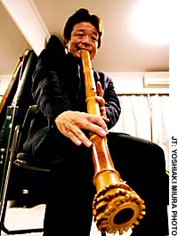 Nakamura puts the shakuhachi down and laughs. "I can keep playing like that for an hour. From pianissimo," he says, waving his arm like a conductor, "to fortissimo." This method took him five years of daily practice to master, and he knows of no one else in the world who can do it.