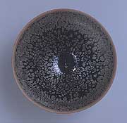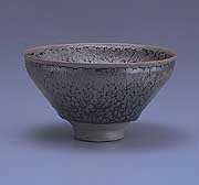 This kind of pottery can be traced back to the Sung Dynasty (960-1279) in China, and the technique is thought to have reached Japan in the Muromachi Period (1338-1573) when Japanese Zen priests brought back a shiny chawan teabowl from a temple on China's Mount Tienmu. The Japanese reading of Tienmu -- Tenmoku -- gave the style its name.