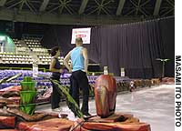 The facts and figures testify to the scale of the production, which is at 15 venues in Japan, its first stop after opening in the U.S. in Sept. 2000. More than 150 people spent three days creating the 35 x 19-meter rink and setting up the stage scenery, as well as 48 speakers and 706 lights.