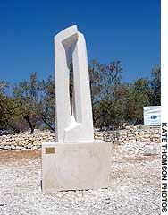 We all finish our sculptures and stand them to see the final effect. Mariano and Fabrizio, the two Mediterranean artists, have used the strong sunshine in Lebanon very effectively. Both Yves and I are used to softer northern light -- our sculptures work well in changing daylight, but photographs do not catch their subtlety. Kata's combination of organic and analytical form reads well in this environment.