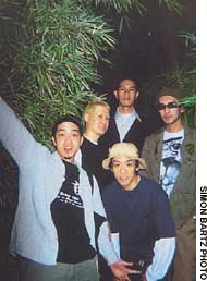 DJ Seen does have tales to tell. After I get all five members of Pico System to play a game in which they have to decide what kind of animal each of the others is most like (this does, believe me, occasionally yield some illuminating responses), Seen is voted a cheetah. Maybe it's got something to do with his catlike fury as he goes about scratching up records on the turntable, or maybe it's the way he lets his speedy napalm-like beats run wild, but vocalist Kimihiko Mabuchi says, "He's the craziest member. He's always jumping on things, especially girls. There are many stories about him."
