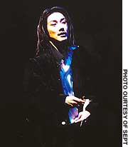 Theatergoers here were agape at the prospect of Kent's all-male "Hamlet," with not only Nomura in its lineup, but also two famed female impersonators -- Eisuke Sasai from the contemporary drama world, and oyama Shinobu Nakamura from the rarefied realm of kabuki. And as if that wasn't enough, these players were teamed with the renowned Shakespearean actors Kotaro Yoshida (Claudius), Masane Tsukayama (Ghost, Player King, Gravedigger) and Haruhiko Jo (Polonius) -- all backed by an English technical crew led by set and costume designer Paul Brown, 2001 winner of both the prestigious Critics Circle and Evening Standard awards.