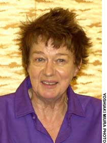 In an interview at the Kinsen Room of the New Otani Hotel, Riley, relaxed and smiling, discussed her art and her life.