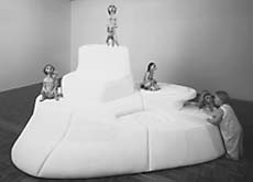 After the vernissage, I carried Piccinini's Venice catalog around for a time. People I showed it to, without exception, instantly responded to the pictures with "kimochi warui!" (a feeling somewhere between uneasiness and revulsion). But at the museum, when confronted with the sculptures, I heard more than a few utterances of "kawaii" (cute, likable) or "kawaiso" (pitiable). Coming face to face with Piccinini's "family" affords far more personal reactions and so introduces a more sympathetic relationship. I, for one, could not get enough.