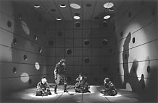 When it was first staged, the striking, avant-garde set by Koaru Kanamori won huge acclaim. This time, Shiki has faithfully reproduced that original set. In the first act we see the castaways' cave as the interior of a white box, with perspective lines and many holes in the walls through which light enters.