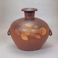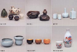 The exhibition celebrates winners of the JCS's prestigious award, especially its creme-de-la-creme gold award. The award was first handed out in 1954, to three potters: current living national treasure Uichi Shimizu, for iron-glazed wares; the late avant-garde potter Junkichi Kumakura; and the Seto potter Mineo Okabe, who actually turned down the award.