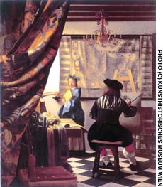 No need to feel cheated, though: Until the publication of Chevalier's book, "The Allegory of Painting" had a claim to being Vermeer's best-known and most-loved canvas. It's got the gorgeous blues and yellows characteristic of his paintings, and the slightly unreal, hightened light and color that's believed to come from his use of a camera obscura, the innovative viewing device that fascinates Griet the maid in "Girl With a Pearl Earring." It even includes a self-portrait of the artist -- though he's viewed from behind, so we can't check whether he really was a Colin Firth look-a-like.