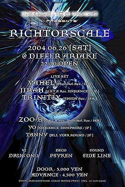 Sequence brings Yahel (Phonocol Records) back to Japan after a very long absence, along with Jirah (USTA Records) and Trinitix (Sigma Records). DJ sets by Zoo-B, Yo and Tanny.