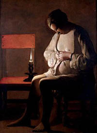 Out of step with new fashions in art, La Tour's work was largely forgotten after his death. The few works that survived stayed in the shadows until his body of work was comprehensively identified by a German scholar in 1915. And it was only after Western art had run its course of revolutions, through Impressionism, Cubism, Expressionism, Dadaism, etc., that the art public, tiring of relentless novelty, picked up the candle to examine once more the eternal beauty of this great painter.