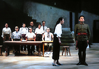 As the drama unfolds we see each character striving to find the best way for Japan to move away from blind patriotism and toward warm internationalism. In a classic case of the truth being stranger than fiction, we are treated not only to some excerpts from real Russo-Japanese talks at that time, but also to some of the Japanese military's hare-brained schemes to defend the homeland. These included one plan to collect poisonous vipers from all over the country and release them ahead of the advancing enemy, and another to develop a love drug they could spray on their foes to distract them from fighting. Through this masterful blend of historical reality and imagination, comedy and mystery, Inoue succeeds in holding his audience's attention all the way through this three-hour work.