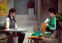 First staged in 1992 in Shinjuku with 22 young actors, "Ice cream Man" is here reduced to a cast of 20 and set at a driving-school camp, where students stay at a mountain lodge for a week or so and take intensive lessons. Onstage, we see a lobby where the would-be drivers come to read newspapers, make phone calls or just to chat with one another. We gradually get to know them through their conversations, and, initially, it seems to be a friendly, jovial group. There is, for example, a man called Notsubo (Cho Songha) who has failed his test so many times that he has been there for six months. We are also introduced to Mizuno (Issei Takahashi), who is involved in a love triangle at the lodge, and to a woman teacher, Jonouchi (Naoko Sato).
