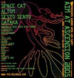 TPE presents "Aim At Ascension 2005" summer open-air party (Supported by Echo&Nymph) at Tachihara Kogen Campground in Nagano Prefecture. Featured live acts Space Cat, Sesto Sento, Altom, Gataka, Brainshaker, Kuromitsu and Nogera vs. Bass Asao & DJ Tarru, plus DJs Ryo, Ziki, Ryo, Mozz, Jun, Chabo & PNO, and more. See the Web site for more details. Tickets are 7,000 yen at the gate. Parking will cost 2,000 yen. Gates open at noon and the music starts at sunset, ending at 3 p.m. on Sunday.