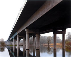 Hans-Christian Schink captures, and creates, such post-reunification reconfigurations in actual civil engineering projects. Schink came of age when a reunited German government was bent on bringing the East German infrastructure up to date, and in "Traffic Projects German Unity" he photographed enormous, socially progressive construction projects that were designed to increase commerce and goods distribution.
