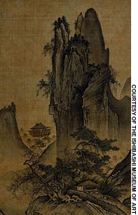 In contrast, Sesshu (1420-1506?) is represented by a four scroll paintings of seasonal landscapes in black ink -- and just a hint of color -- on silk. Inspired by the dramatic scenery of West Lake in China, and painted when Japan was torn by successive wars, they serve as contemplative portals to an idealized world.