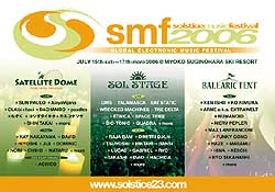 Solstice Music Festival 2006 at the Myoko Suginohara ski resort in Niigata Prefecture. Advance tickets on sale for 13,500 yen (or 15,000 yen at the gate.) Parking prices are scaled to favor more people per car. More info to come in an upcoming preview.