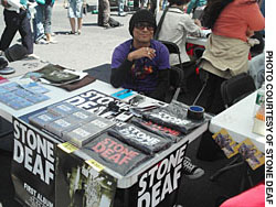 In light of such competition, it is no coincidence that industry workshops at SXSW and NXNE (sample workshop title: "Navigating the Internet High Seas") focused on how bands can get results through savvy online marketing. Between manning their band stall at the open-air "Indie Music Market," hawking CDs and T-shirts, Stone Deaf's Yamamura and Niikura made it to two NXNE workshops, including one on artist self-management. But since the seminars were mostly geared toward North American acts, the band got little out of it.