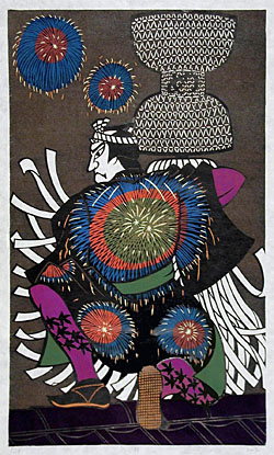 * When buying prints, the paper is of special interest, since much of it is handmade. When you see something you like, find out as much about the artists as possible -- we are happy to help with that. Then we can spread out a portfolio and show examples of other works the artist has made.